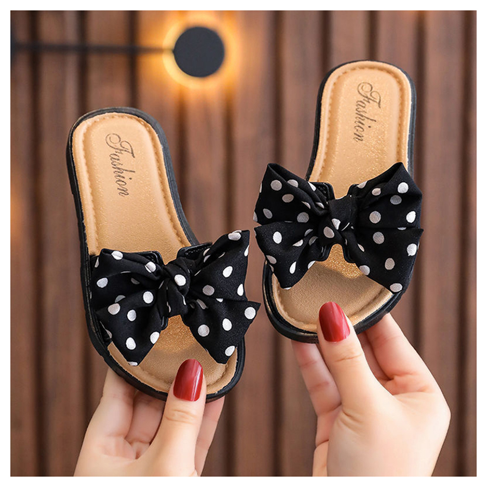Summer Girls Bow Non Slip Outer Wear Soft Bottom Slippers 32 Black Beach Sandals Non Slip Shower Bathroom Slippers Soft Summer Slide Sandals Walmart Com